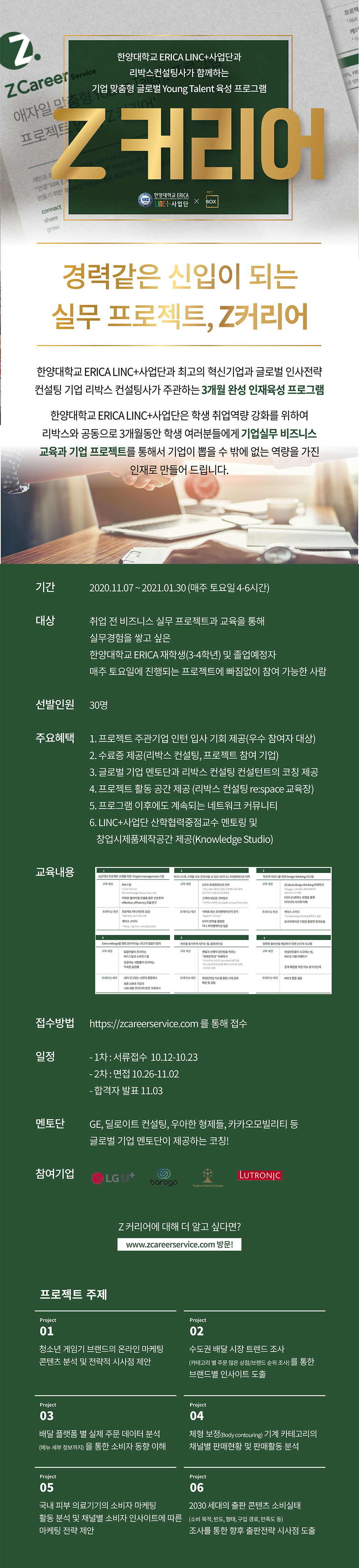 [교수추천] 기업 맞춤형 글로벌 Young Talent 육성 프로그램 Z커리어 추가모집 ( ~10/31, 24:00까지) Hit 7677