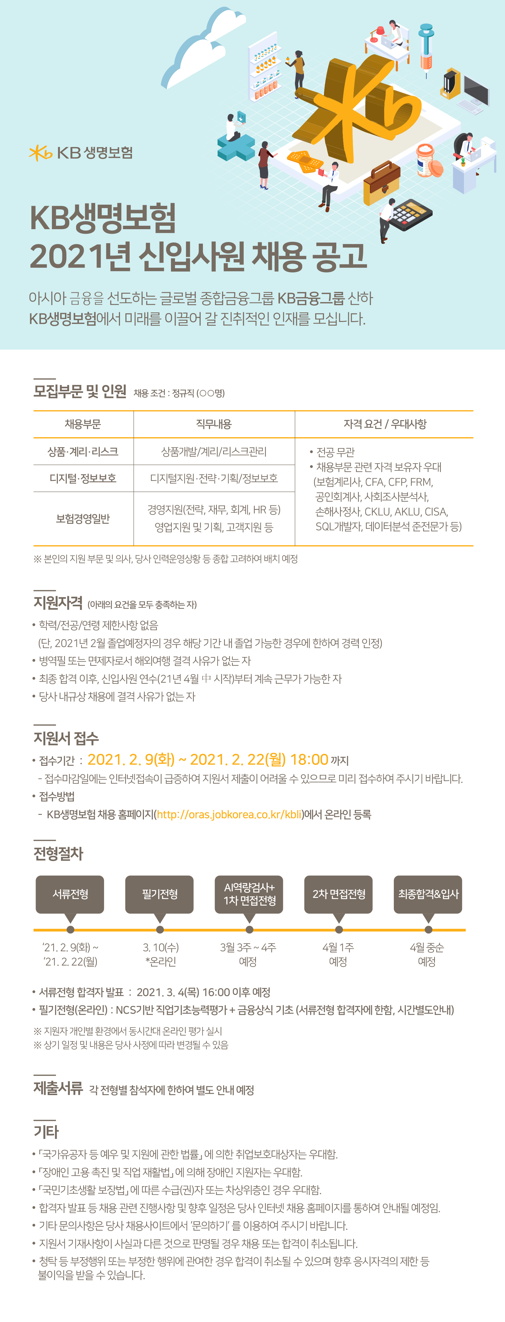 KB생명보험 채용 홈페이지(http://oras.jobkorea.co.kr/kbli)에서 온라인 등록