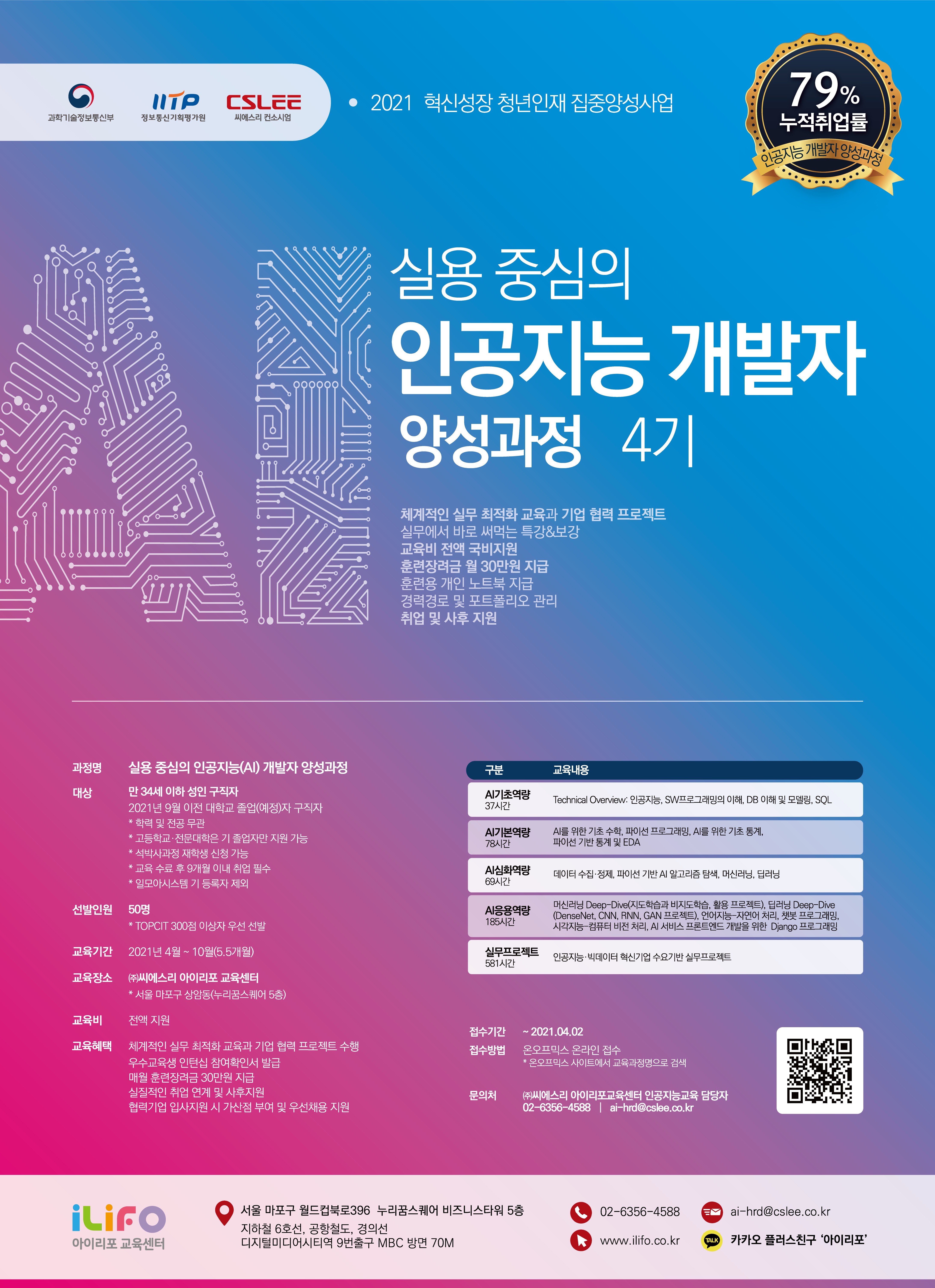 - 수료 후 지속적인 취창업 지원 프로그램 제공(취업률: 79%)