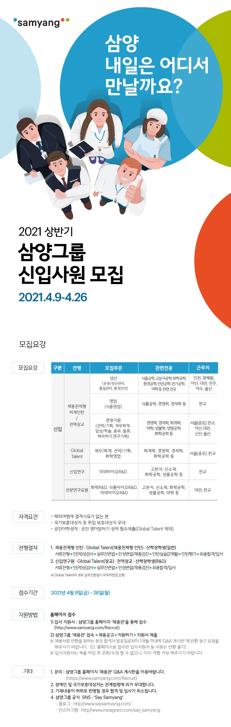- 직무 및 그룹관련 내용을 확인하시려면 삼양그룹 공식 SNS을 확인해주세요