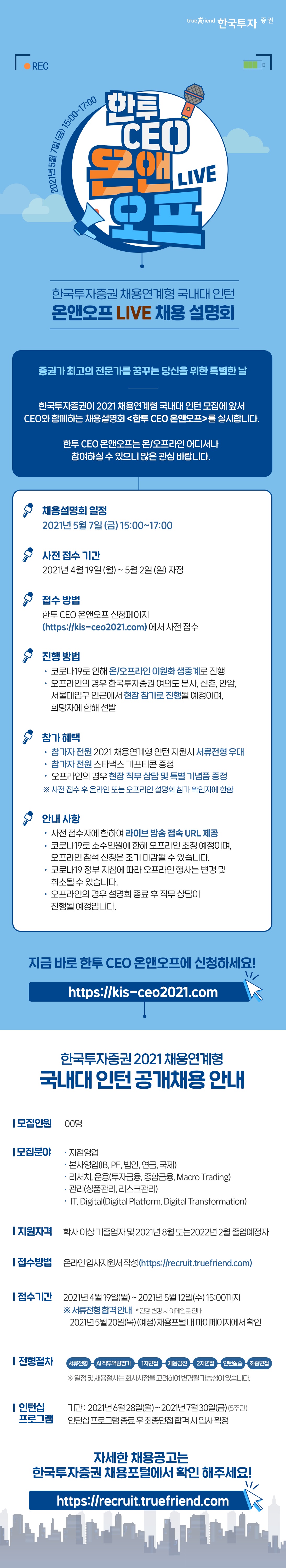 CEO와 함께하는 채용설명회 (한투 CEO 온앤오프)를 실시합니다.
