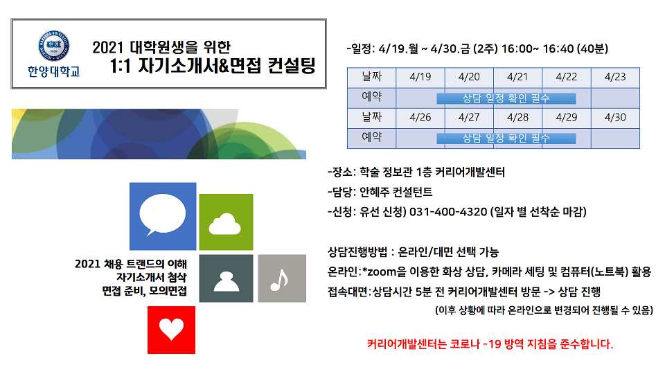 [HY-CDP]2021 대학원생 자기소개서 면접 클리닉