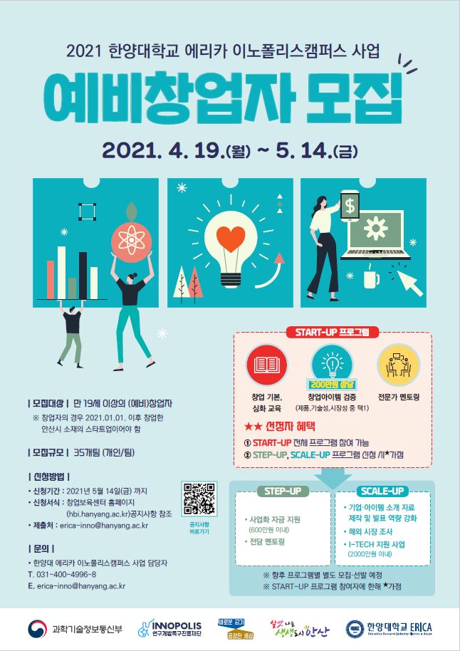 바. 신청방법 : 지원서 작성후 이메일(erica-inno@hanyang.ac.kr)제출