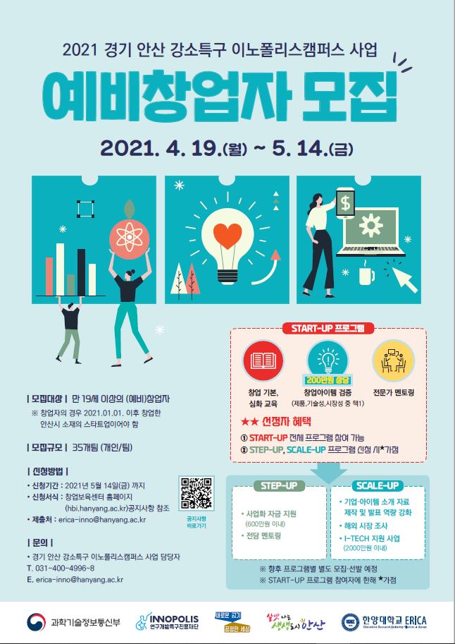 창업지원팀 이노폴리스캠퍼스 사업에서 진행하는 ‘2021년 예비창업자 모집(START-UP 프로그램)’ 행사를 진행합니다.
