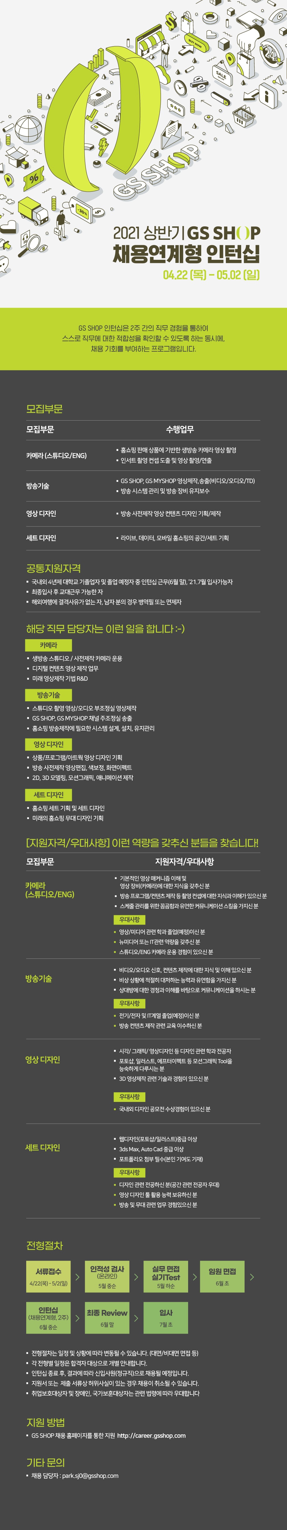 방송기술 | -GS SHOP, GS MYSHOP 영상제작, 송출(비디오/오디오TD) -방송 시스템 관리 및 방송 장비 유지보수 |