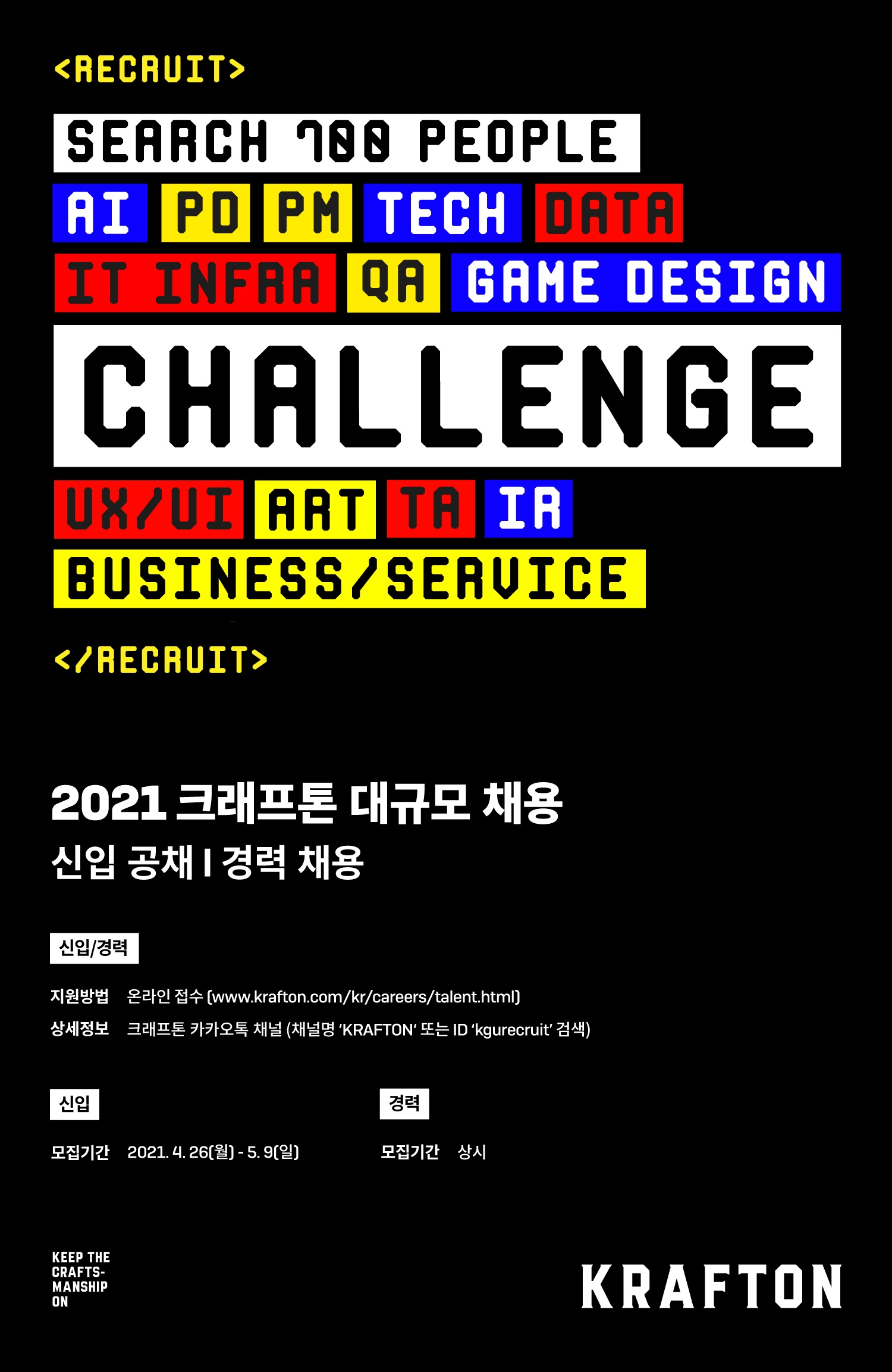 [KRAFTON] 2021 크래프톤 대규모 신입 공채 모집 안내 (~ 5/9) Hit 4770