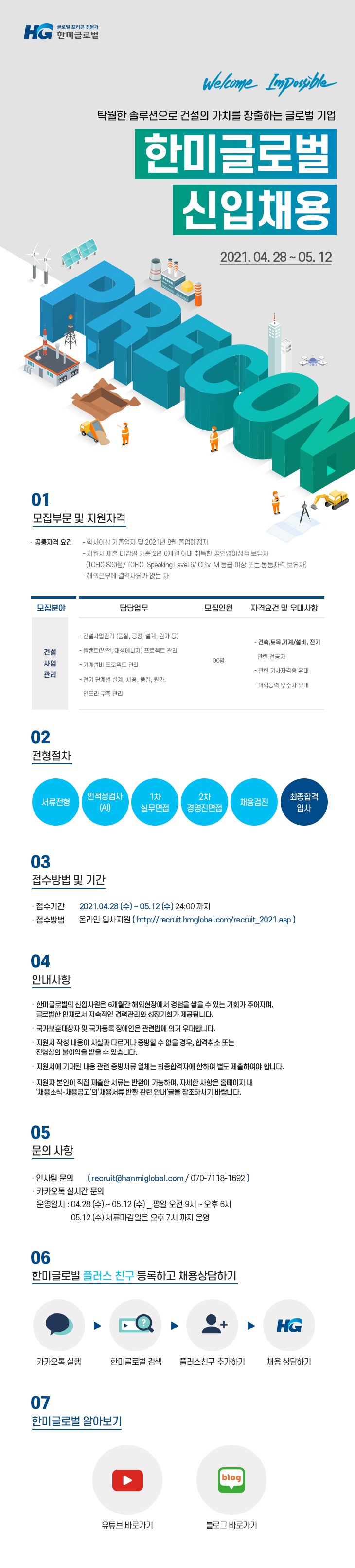 [한미글로벌] 2021 한미글로벌 신입채용 (~5/12)