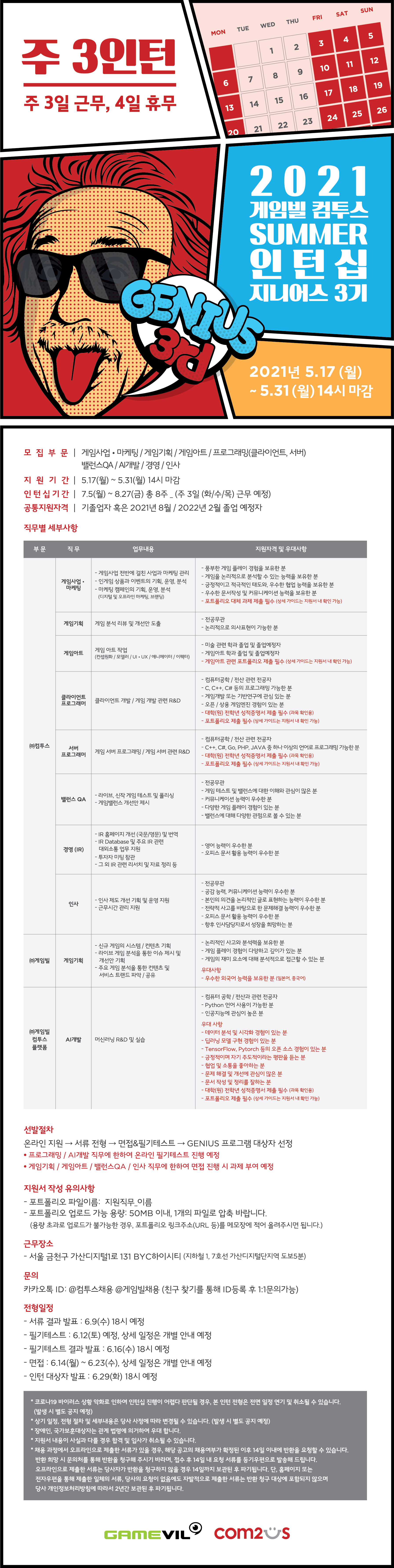 [게임빌 컴투스] 2021 게임빌 컴투스 SUMMER 인턴십 지니어스 3기