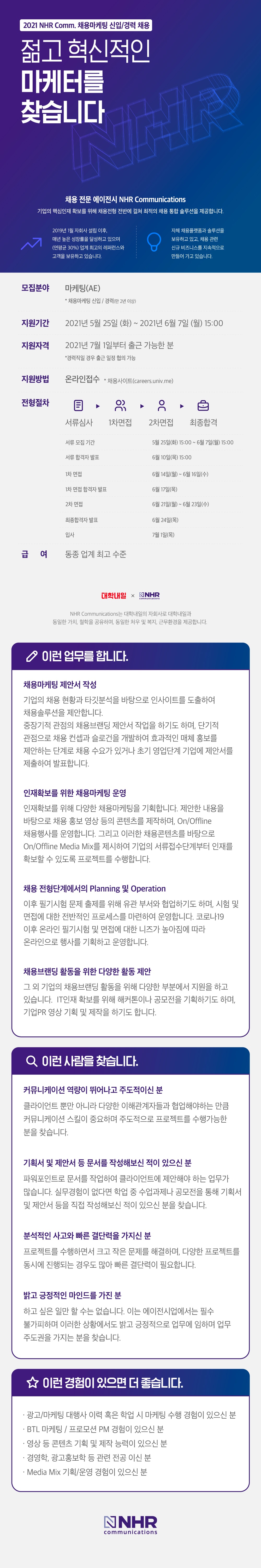 채용 전문 에이전시 엔에이치알 커뮤니케이션즈에서 젊고 혁신적인 마케터를 찾습니다