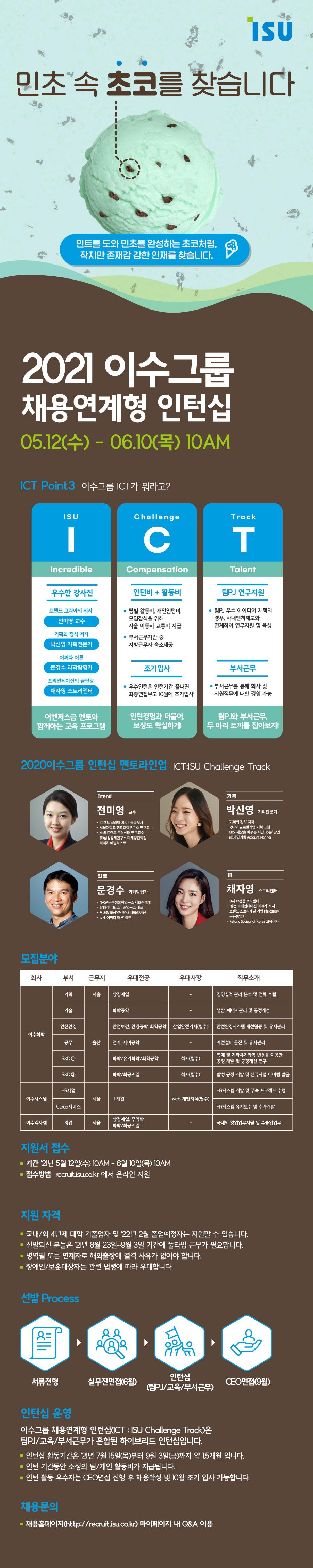 2021 이수그룹 ICT 채용연계형 인턴십 멘토라인업 모집(~6.10)