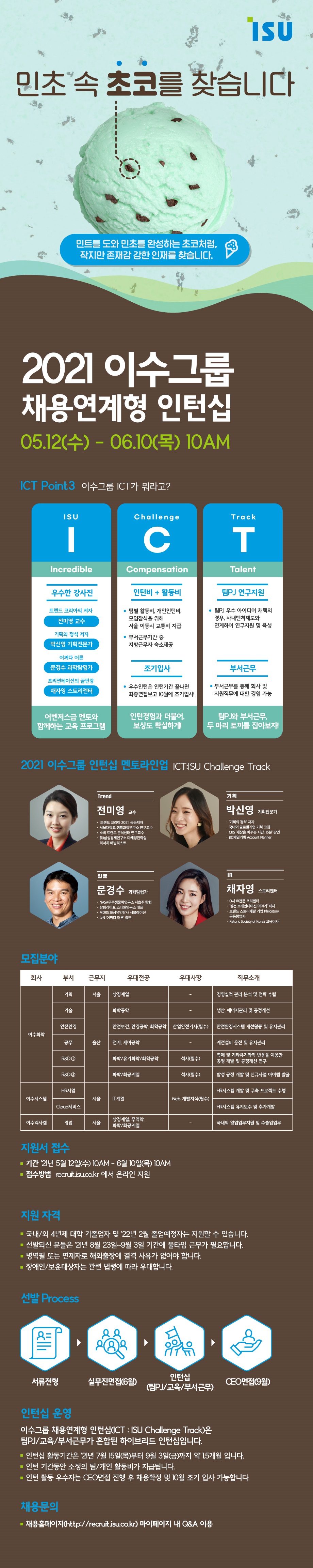 2021 이수그룹 ICT 채용연계형 인턴십 모집 (~6.10(목) 10시)