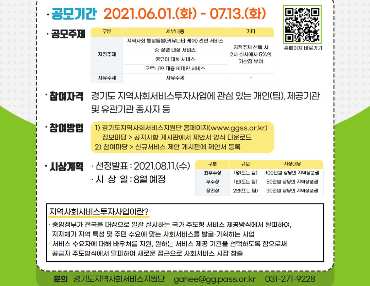 「2021년 경기도 지역사회서비스투자사업 신규서비스 아이디어 공모」 합니다.