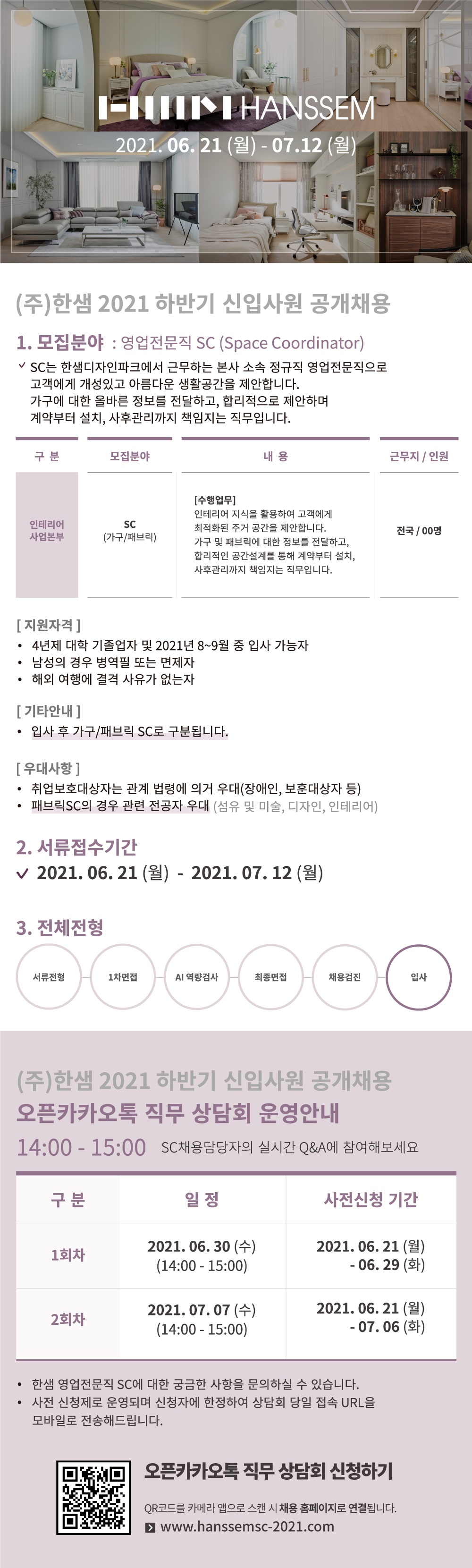 ◼︎ 한샘 SC부문 채용이 궁금하다면?