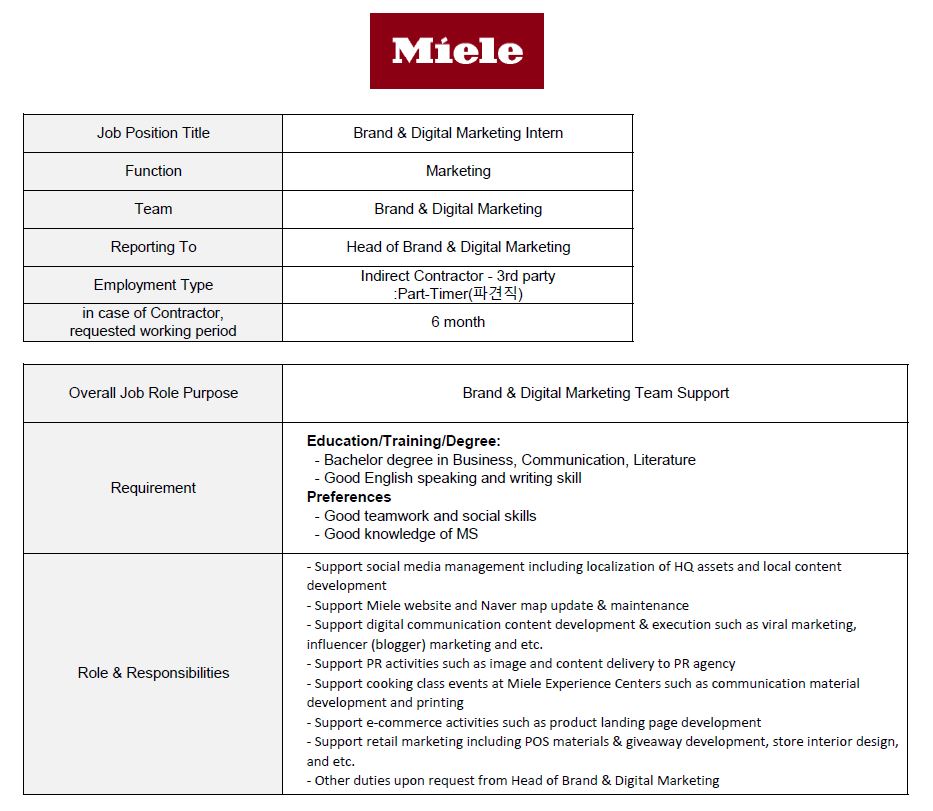 -연락처 : ji-won.min@miele.com 으로 이력서 첨부