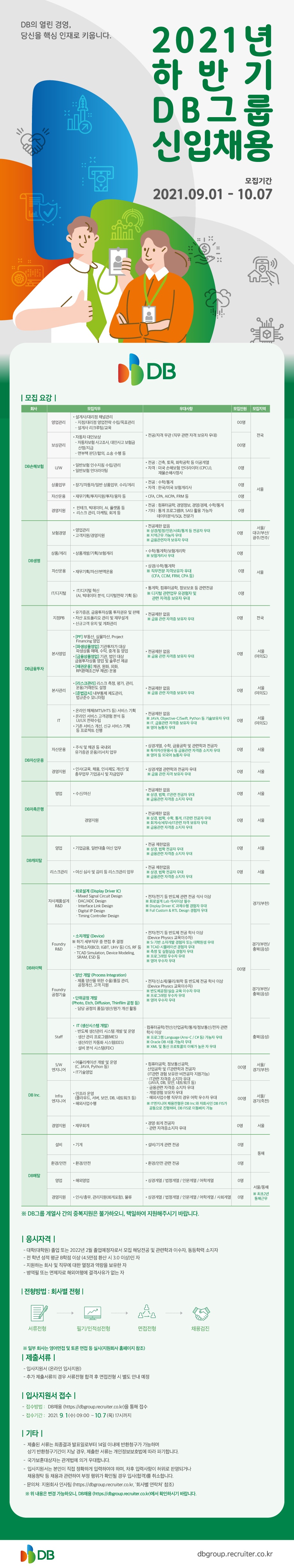 - 접수방법 : DB채용 (https://dbgroup.recruiter.co.kr) 을 통해 접수