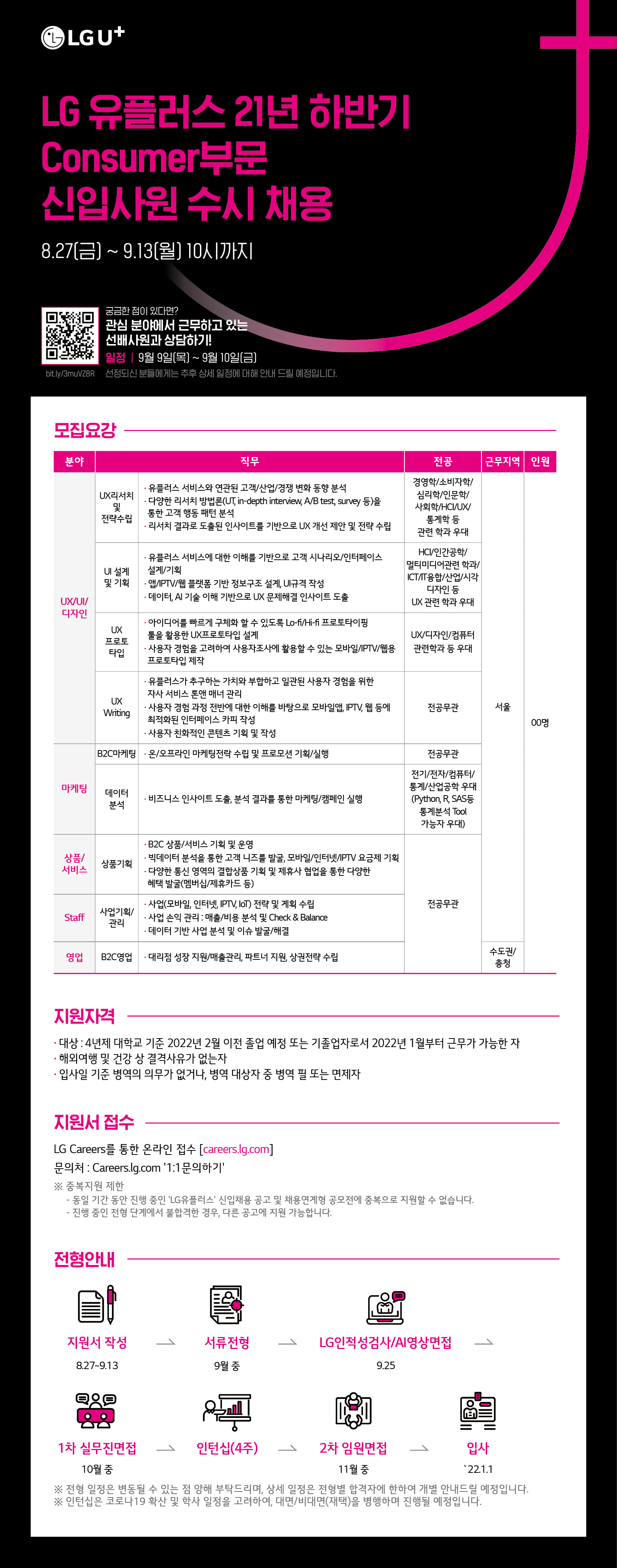 [LG유플러스] 2021년 하반기 신입사원 수시채용 (~9.13까지)