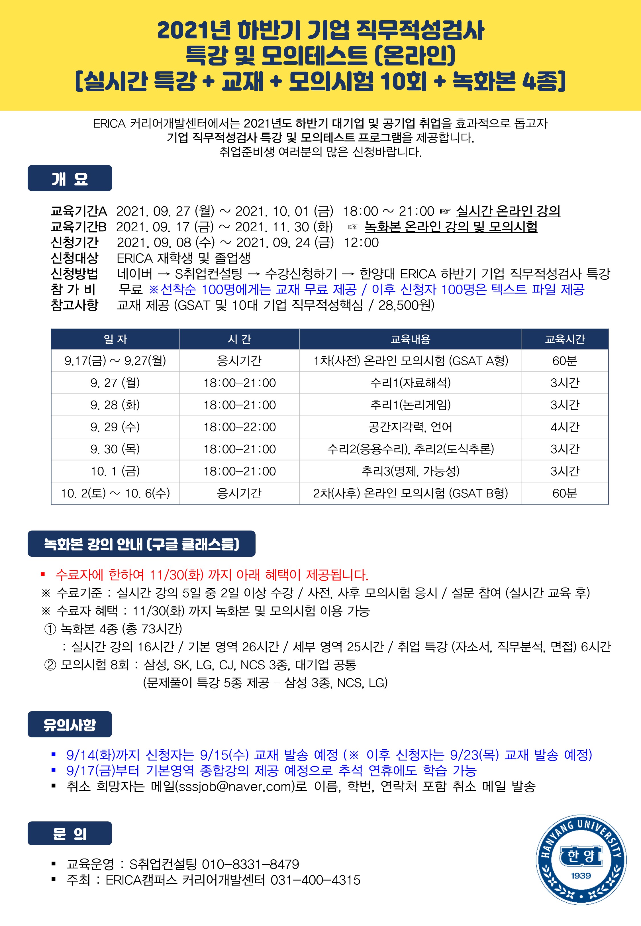 [HY-CDP] 온라인 대기업 직무적성검사 특강 및 모의시험 참가안내