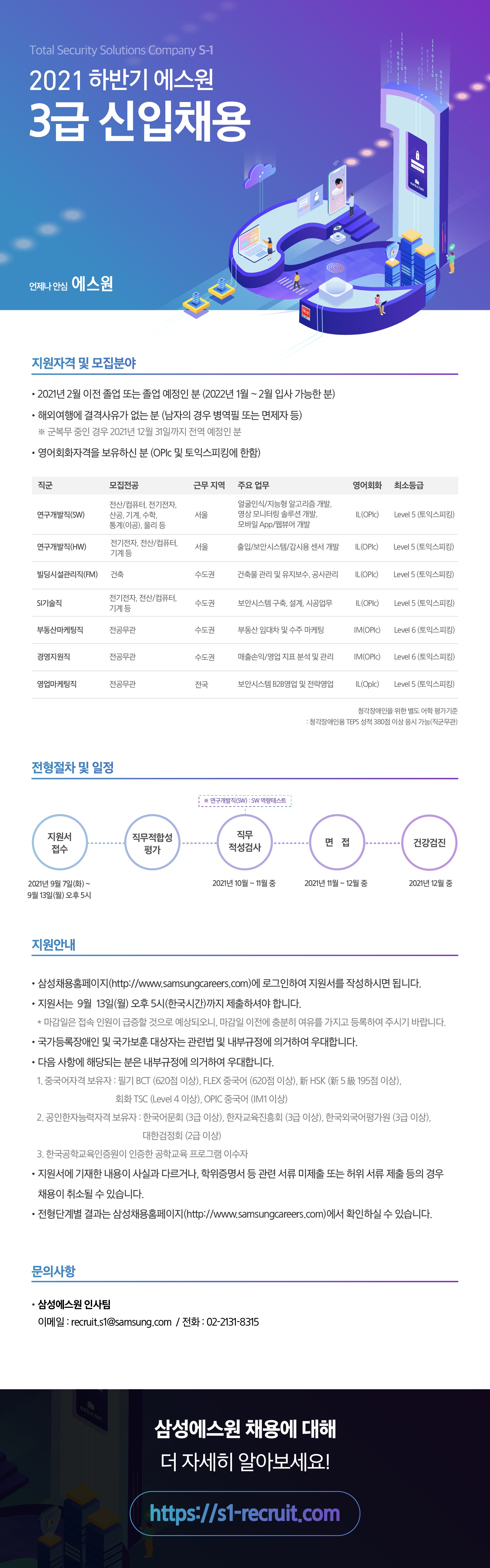 - 기타 주요 안내는 삼성에스원 채용안내 사이트 및 삼성채용사이트에서 확인하시기 바랍니다.