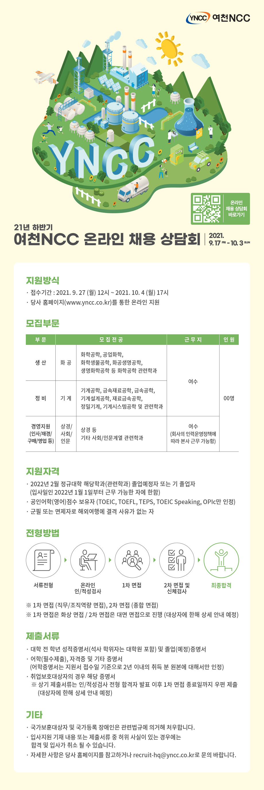 ■지원자격 -2022년 2월 정규대학 해당학과(관련학과) 졸업예정자 또는 기 졸업자 (입사일인 2022년 1월 1일부터 근무 가능한 자에 한함) -공인어학(영어)점수 보유자 (TOEIC, TOEFL, TEPS, TOEIC Speaking, OPIc만 인정) -군필 또는 면제자로 해외여행에 결격 사유가 없는 자