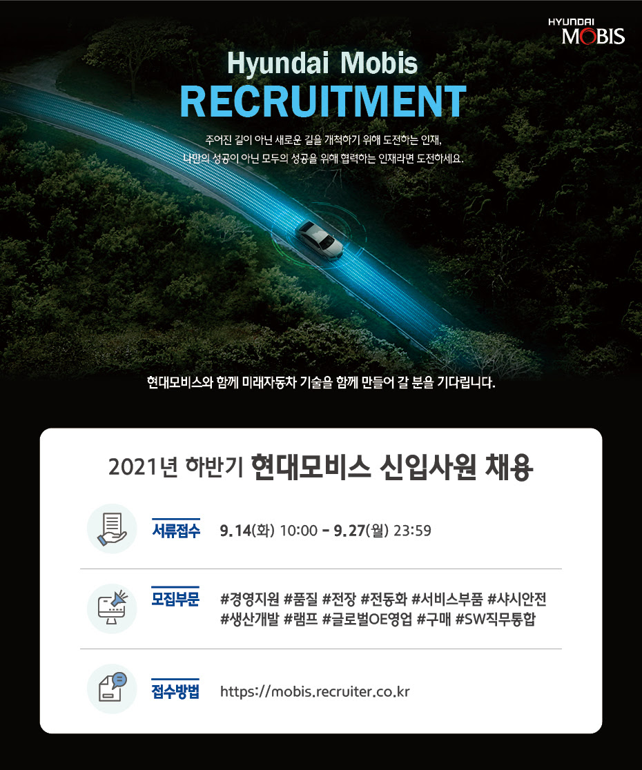 [현대모비스] 2021년 하반기 현대모비스 신입사원 채용 모집(~9.27)