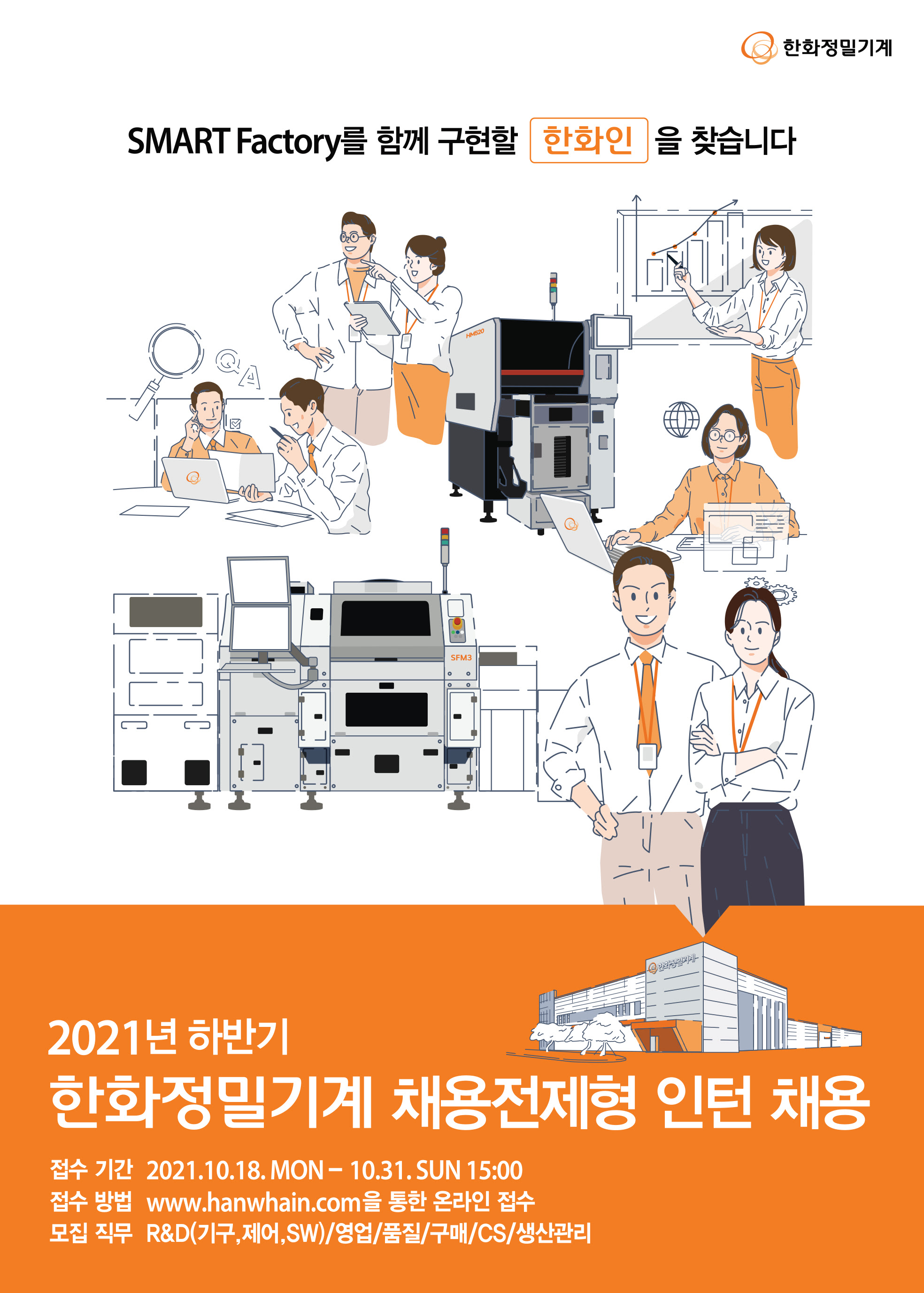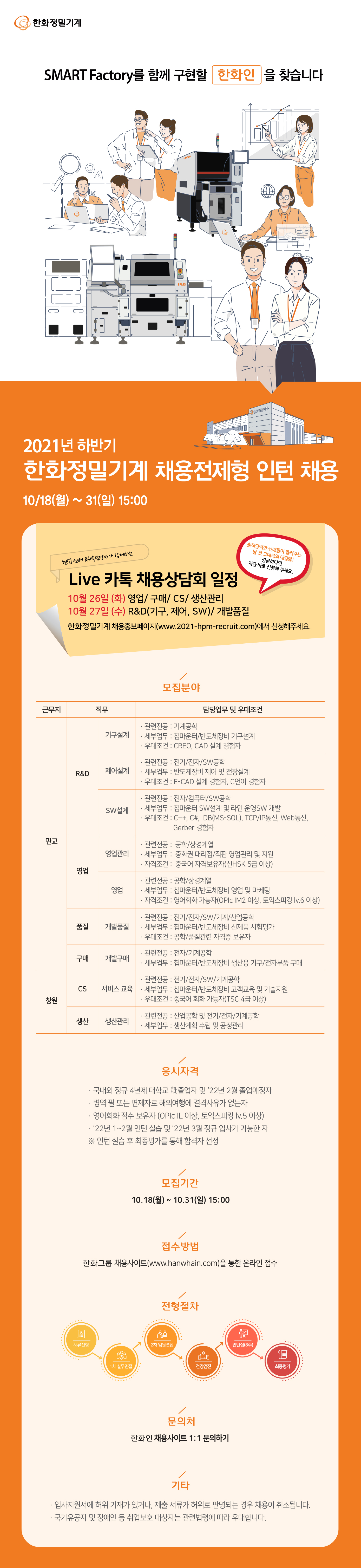 [한화정밀기계] 2021 하반기 채용전제형 인턴 채용 ( ~ 10/31)