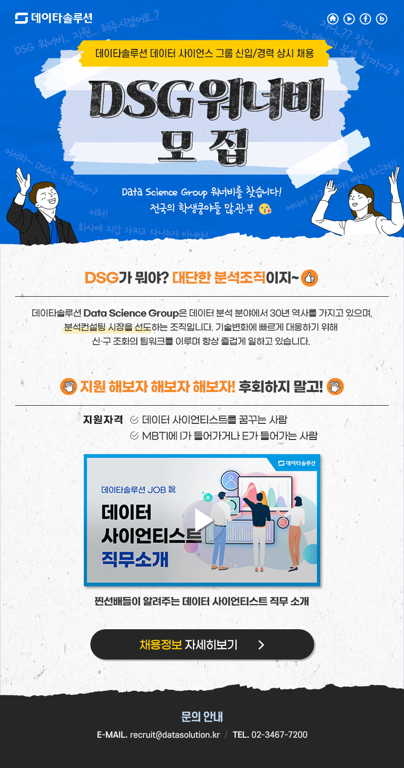 (주)데이타솔루션 데이터 사이언스 그룹 신입/경력 사원 (상시채용)