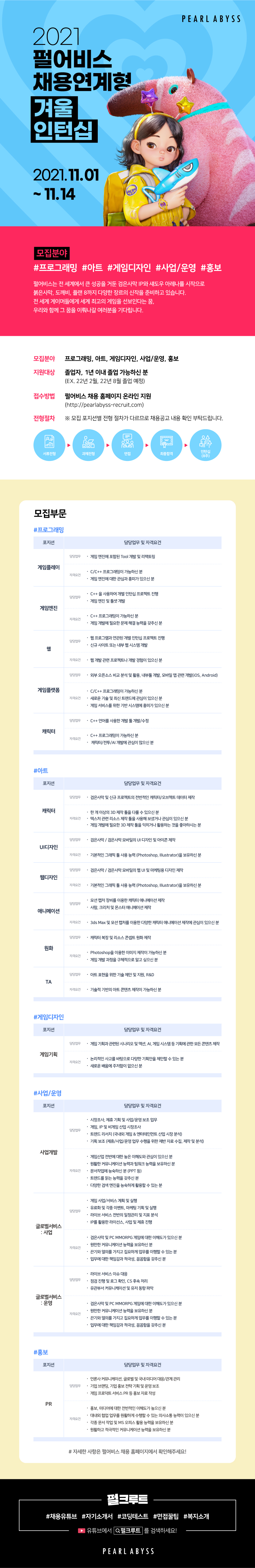 ■ 인턴십 자세히 보기 : http://pearlabyss-recruit.com/