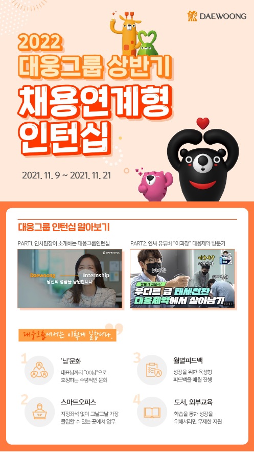 - 접수방법 : 대웅 비비드채용홈페이지 (https://dw.vividapp.kr/) 지원
