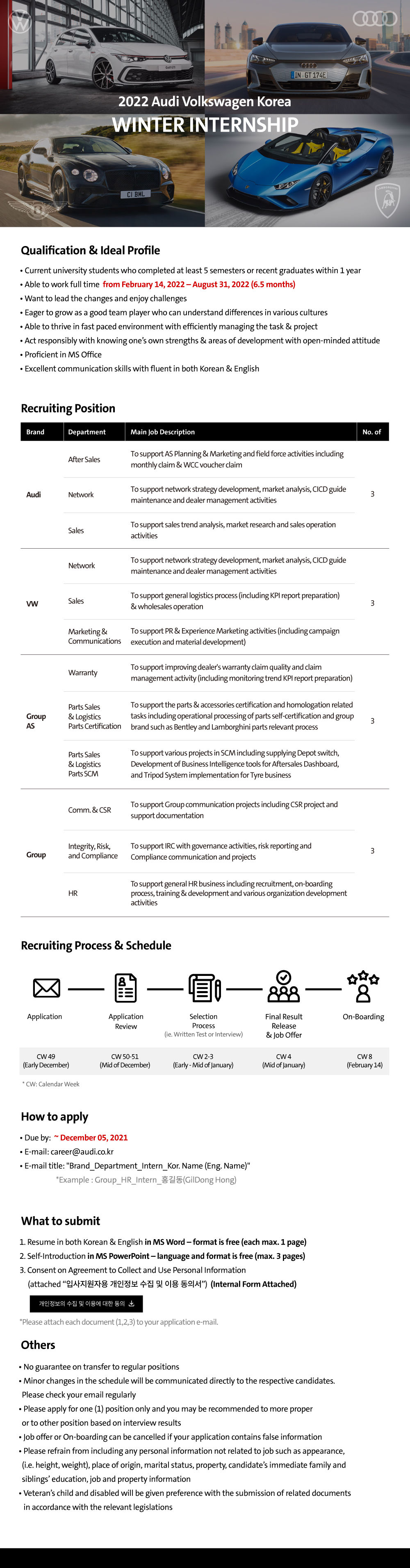2022 Audi Volkswagen Korea Winter Internship (~12/05)