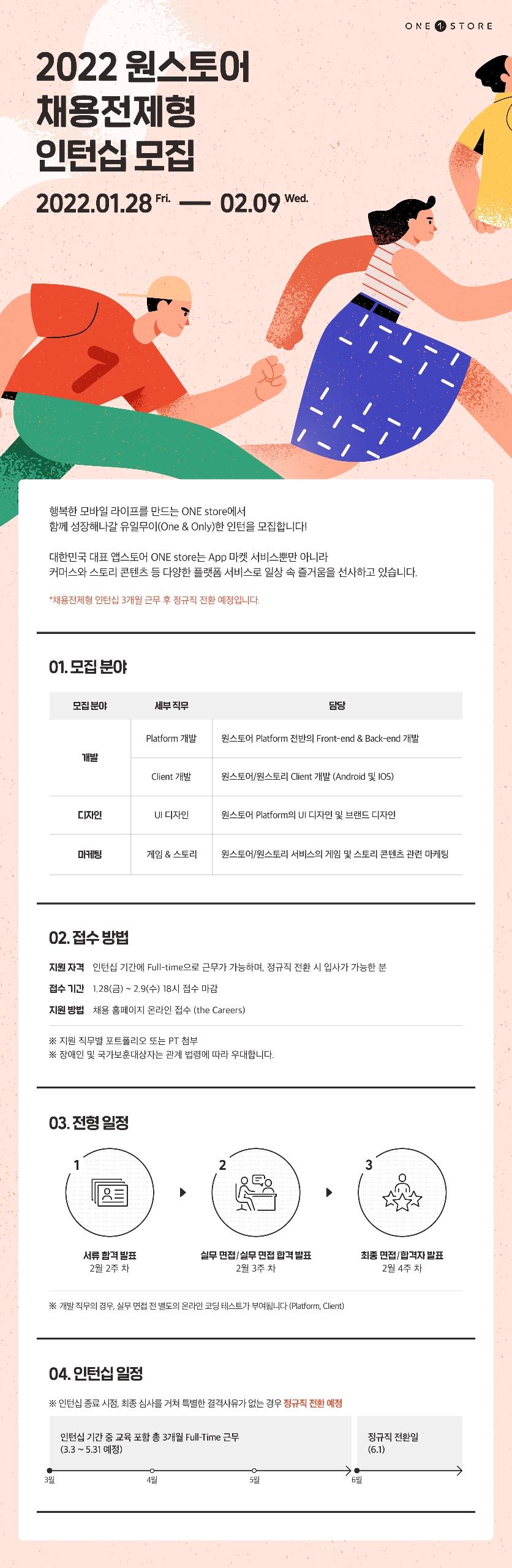 행복한 모바일 라이프를 만드는 ONE store에서 함께 성장해나갈 유일무이(One & Only)한 인턴을 모집합니다!