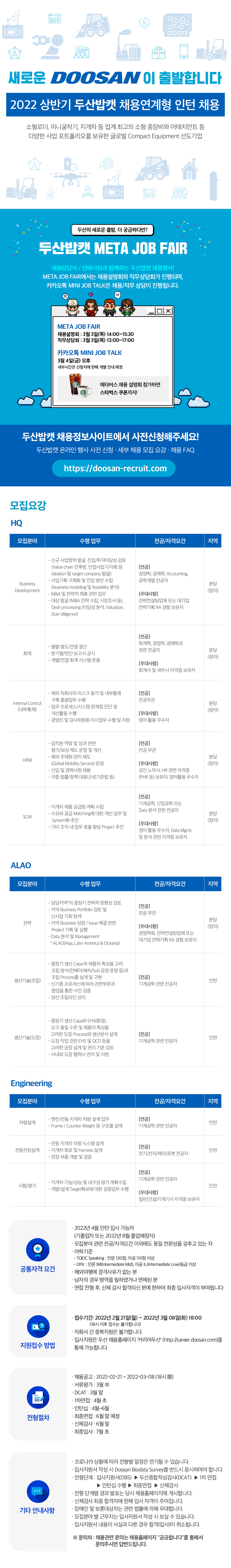 두산밥캣 META JOB FIAR 신청 바로가기 > http://doosan-recruit.com■ 모집 분야