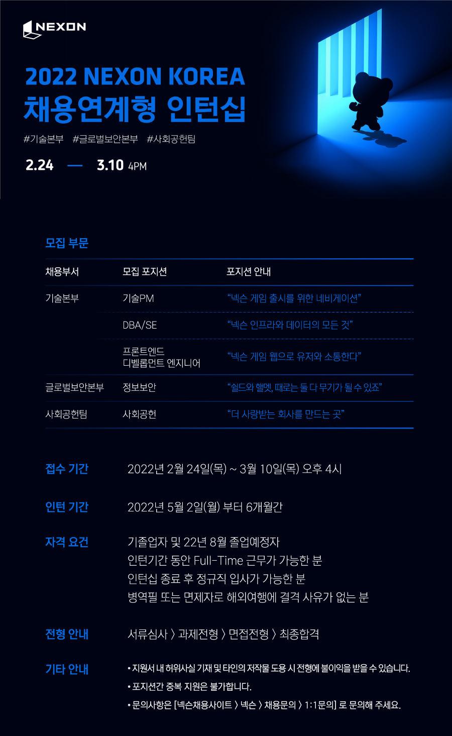 [넥슨코리아] 채용연계형 인턴십(~3/10)