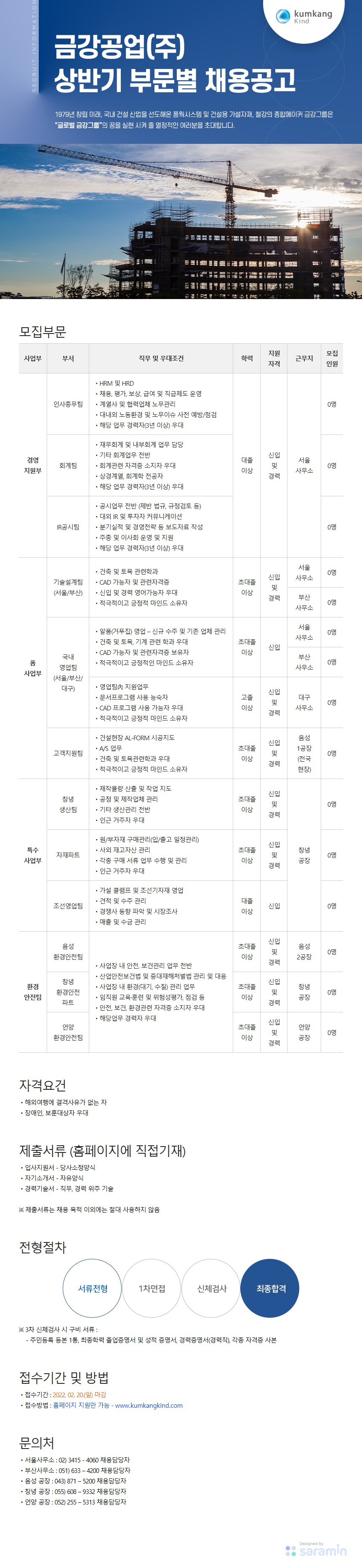 [금강공업(주)] 상반기 부문별 채용공고 (교수추천)