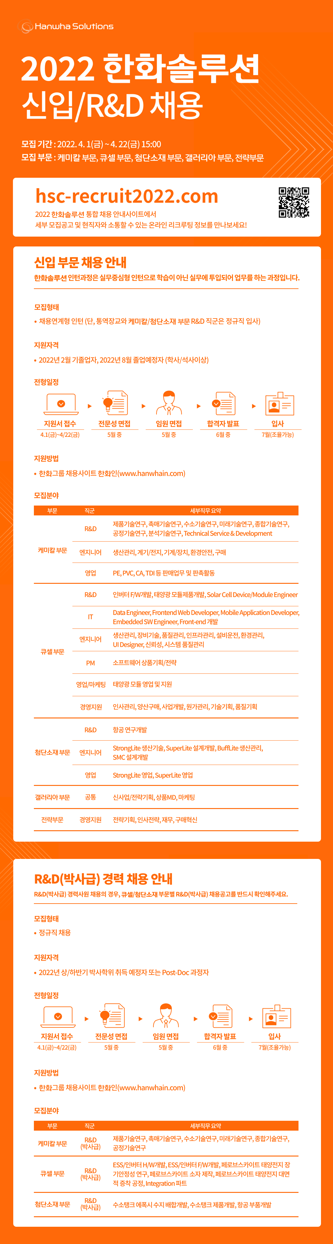 R&D(박사급) 경력사원 채용의 경우, 큐셀/첨단소재 부문별 R&D(박사급) 채용공고를 반드시 확인해주세요.