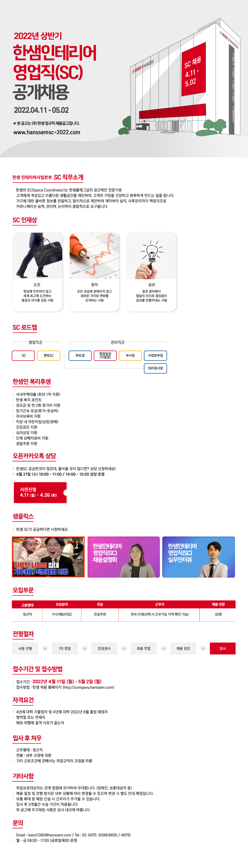 2022 한샘인테리어 영업직(SC) 신입사원 공개채용(~5/2)