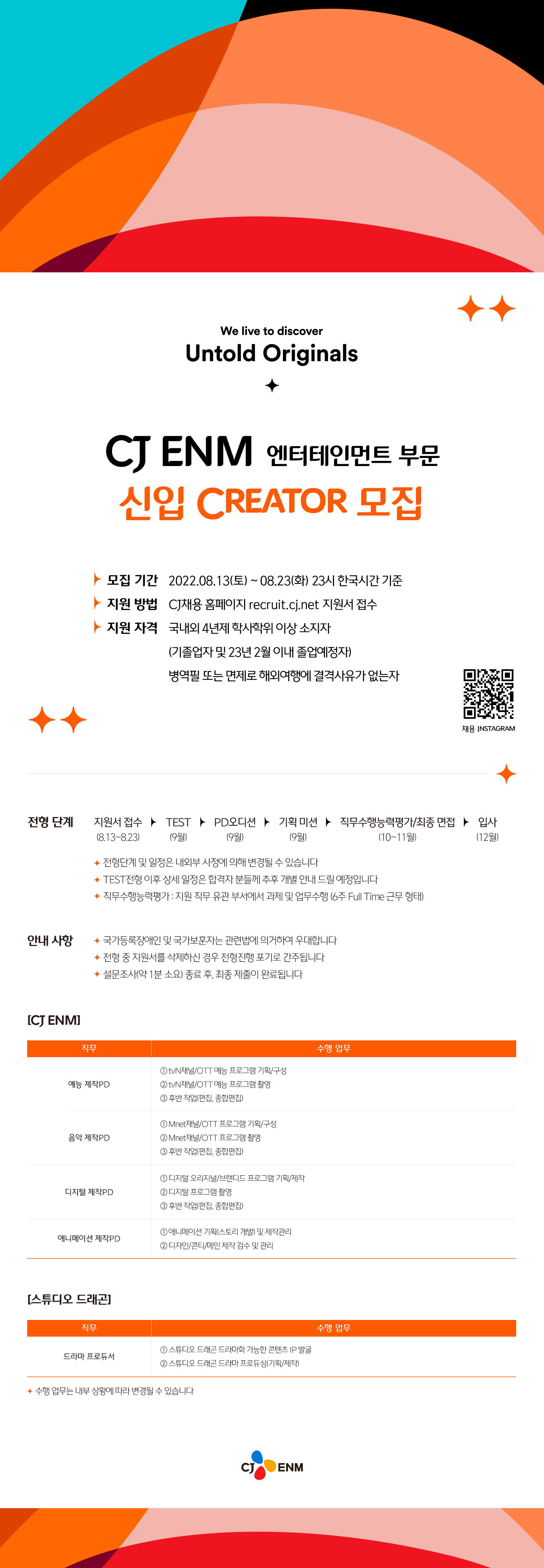 ② CJ ENM 엔터테인먼트 부문 채용 인스타그램 (@enm_recruiting)