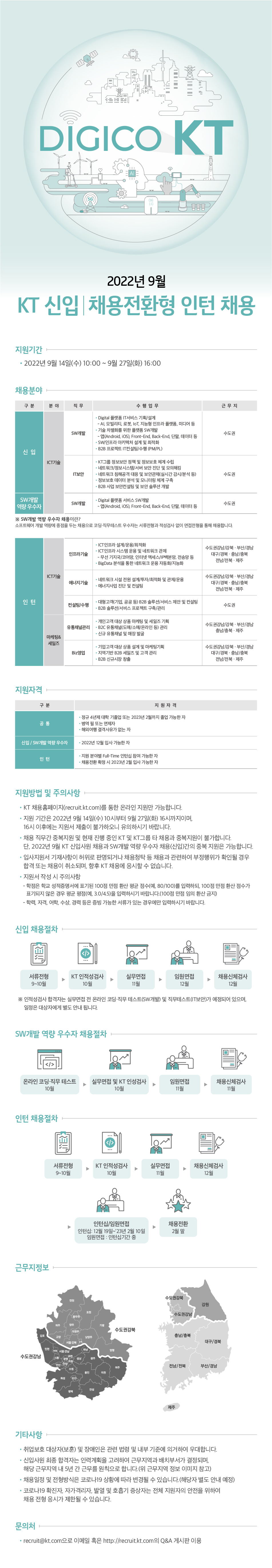 - KT 채용홈페이지(recruit.kt.com)를 통한 온라인 지원만 가능합니다.