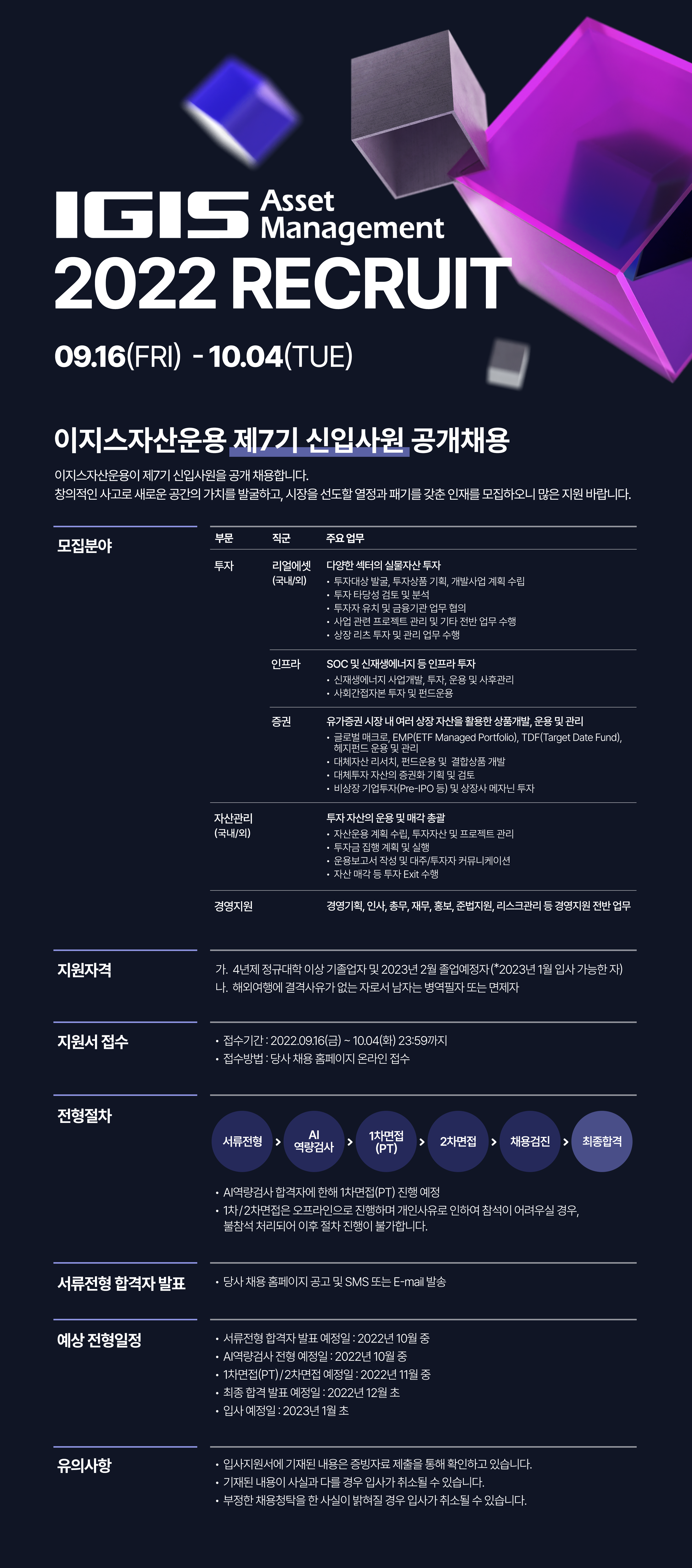 이지스자산운용이 제 7기 신입사원을 공개 채용합니다. (~10/4 23시 59분 마감)