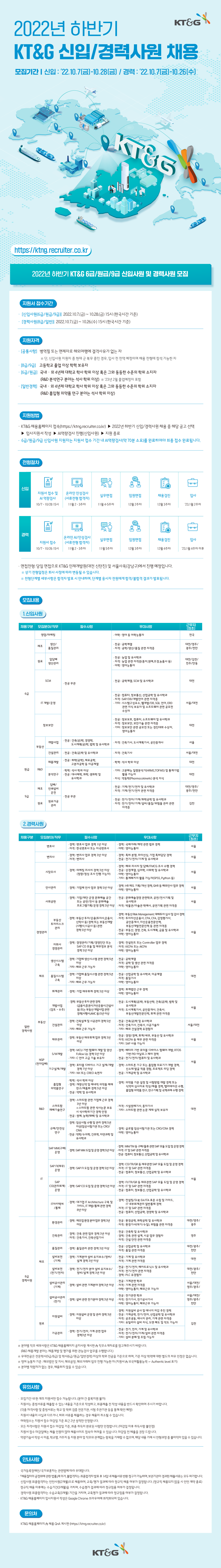 ※분야별 직무 세부사항은 KT&G 채용홈페이지 공지사항 게시판 內 직무소개자료를 참고해주시기 바랍니다.