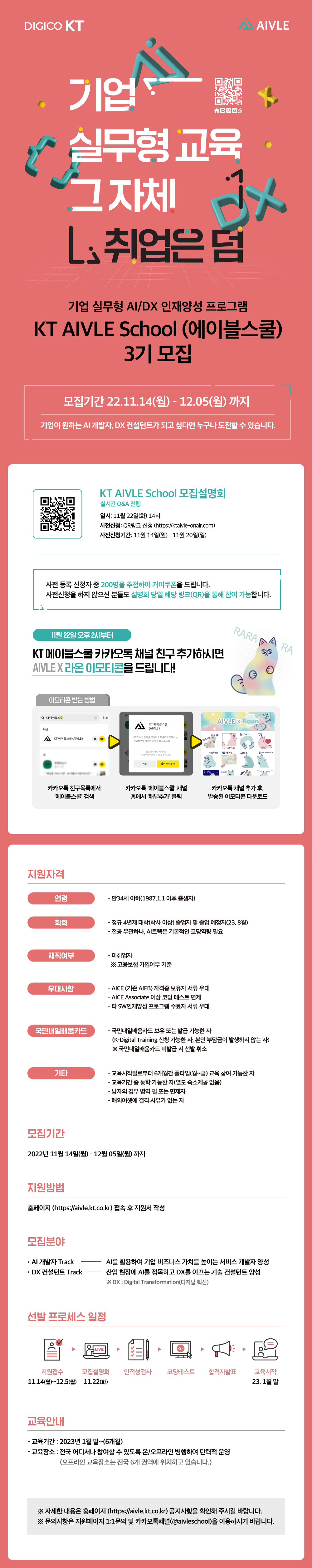 - 사전신청: QR링크 신청(https://ktaivle-onair.com)
