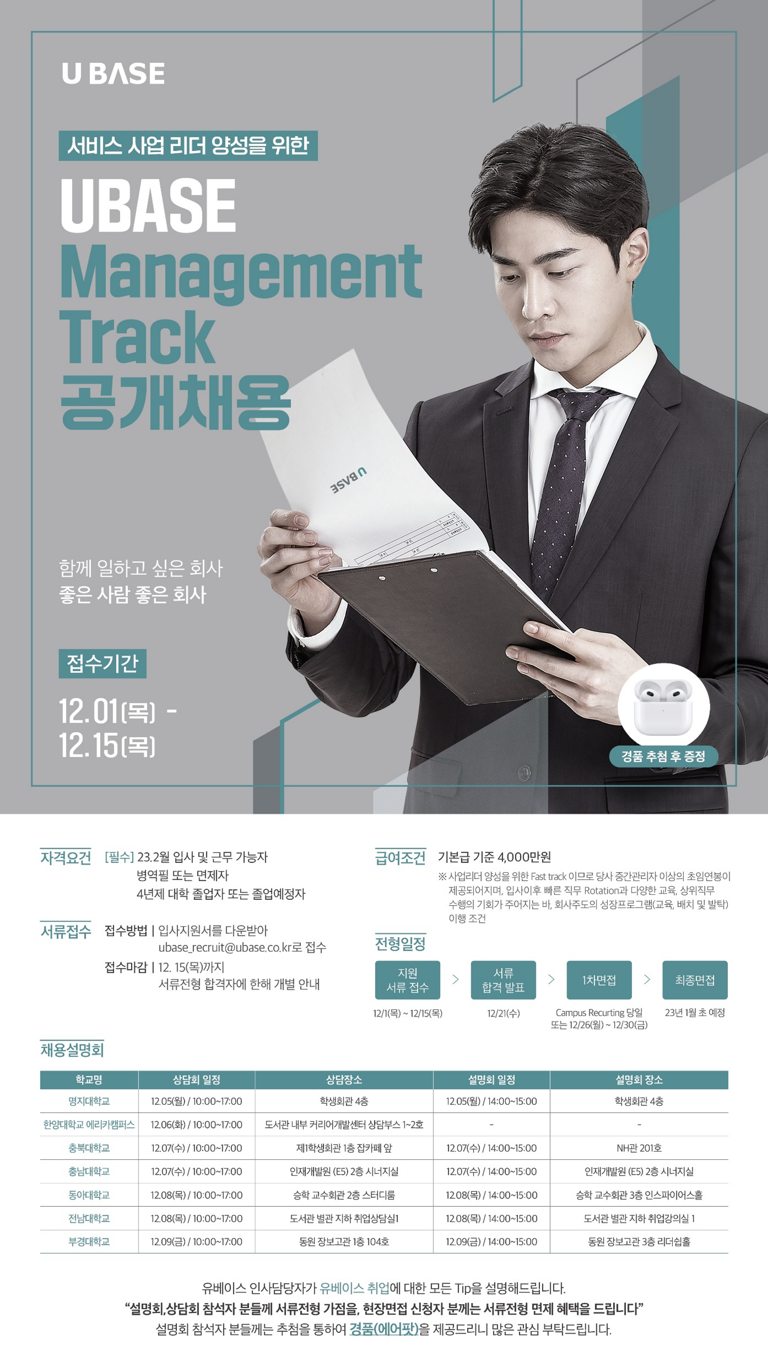 - 현장면접 일시 : 12월 6일 10:00~17:00 / 현장면접 신청자에 한해 조 편성 후 별도 안내 예정
