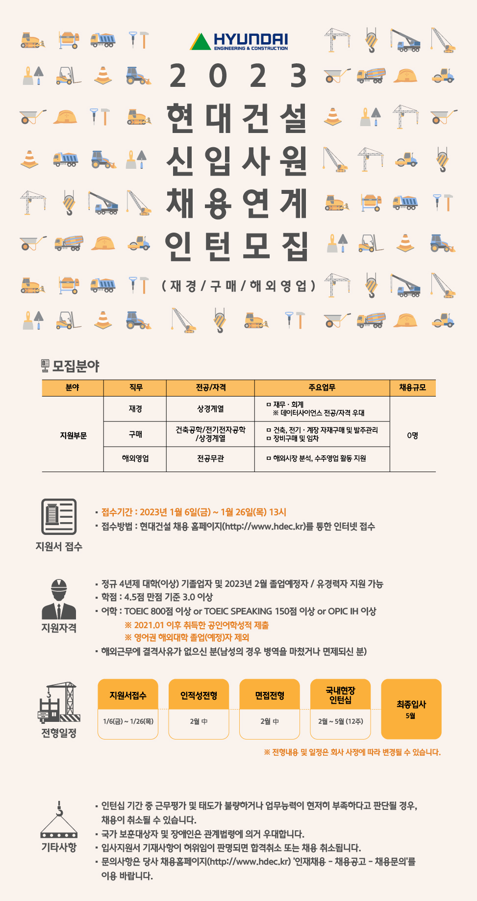 • 접수방법 : 현대건설 채용 홈페이지(http://www.hdec.kr)를 통한 인터넷 접수
