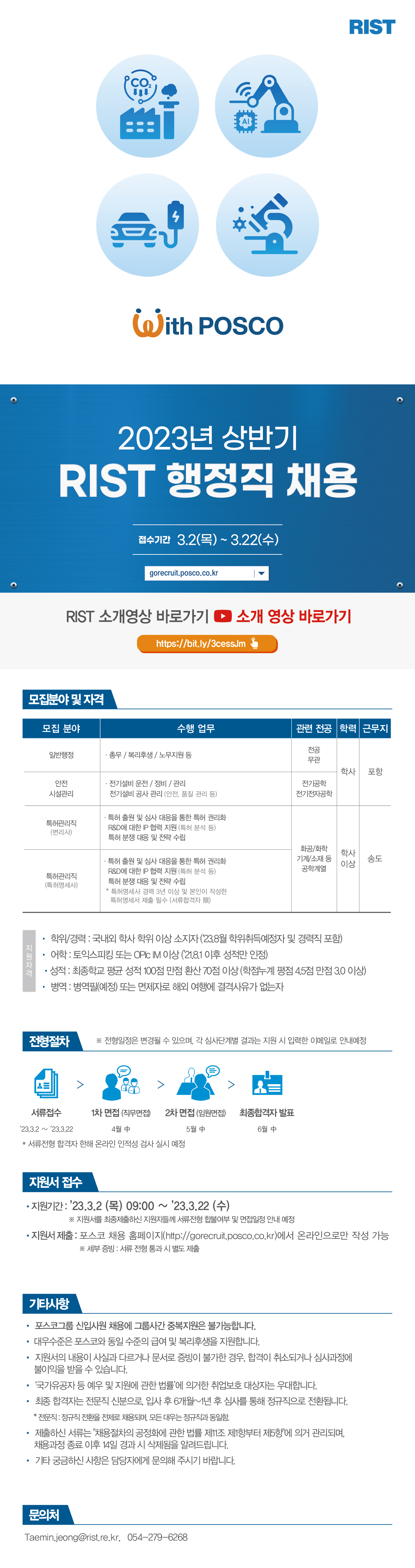 지난 35년간 포스코와 국가의 기술 발전에 기여해 온 RIST는 신재생에너지, 스마트그리드 등 에너지 관련 연구에서부터 이산화탄소 자원화, 슬래그 재활용 등 환경 관련 연구까지 인류의 미래를 위한 기술개발에 역량을 집중하고 있습니다.