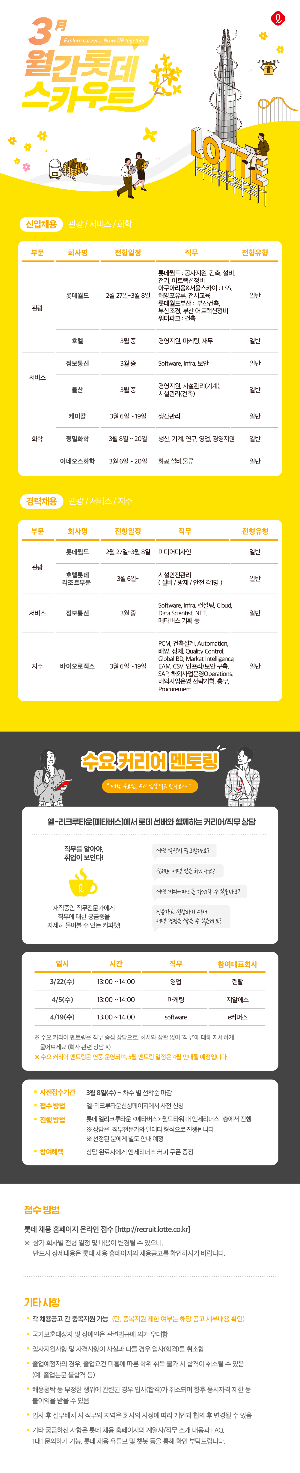 2023년 3월 롯데채용 및 수요 커리어 멘토링 프로그램 안내