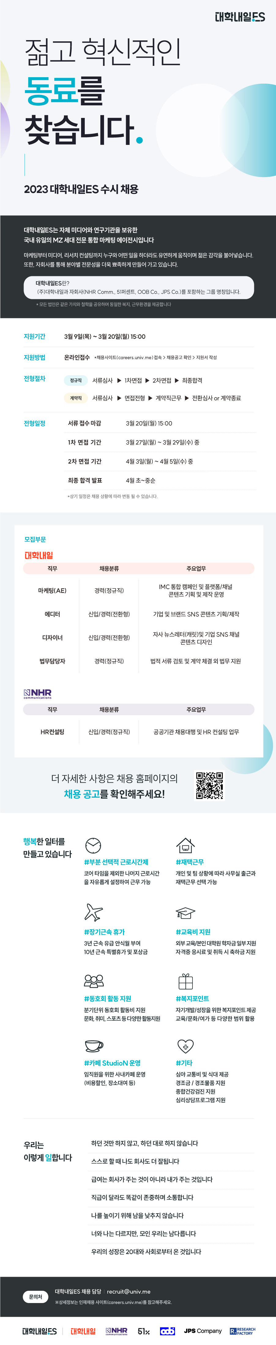 ▶지원하러 가기 : https://careers.univ.me/Recruit/Detail/208?pageidx=1&type=%EC%A0%84%EC%B2%B4&duty=0&sort=1