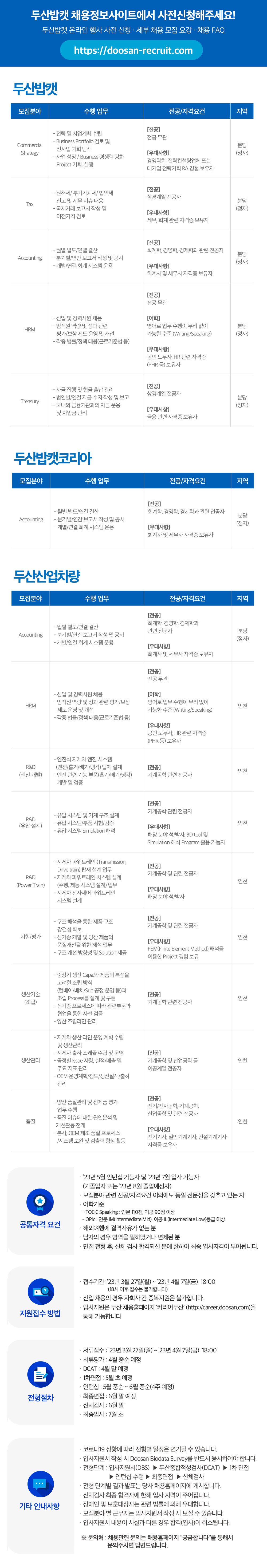 ・접수방법 : 두산 채용홈페이지 '커리어두산' (http://career.doosan.com) 지원 접수