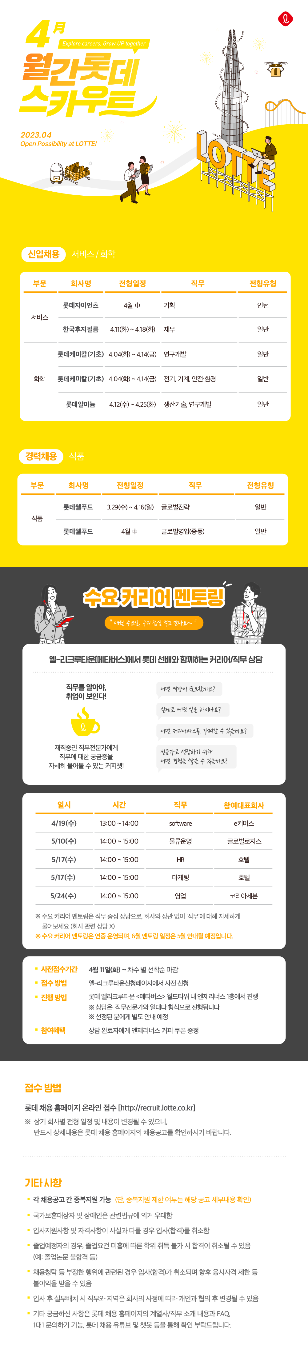 4월 롯데채용 및 수요 커리어 멘토링 프로그램 자세히 보기 (하단 링크 클릭)