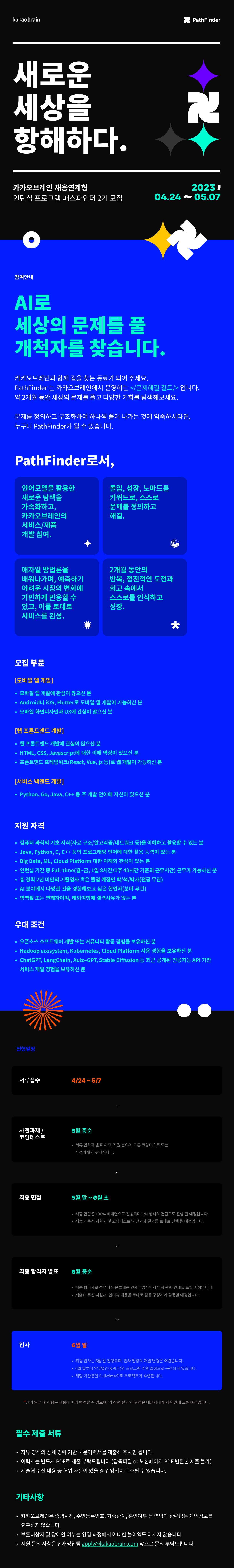 - 지원 문의 사항은 인재영입팀 apply@kakaobrain.com 앞으로 문의 부탁드립니다.