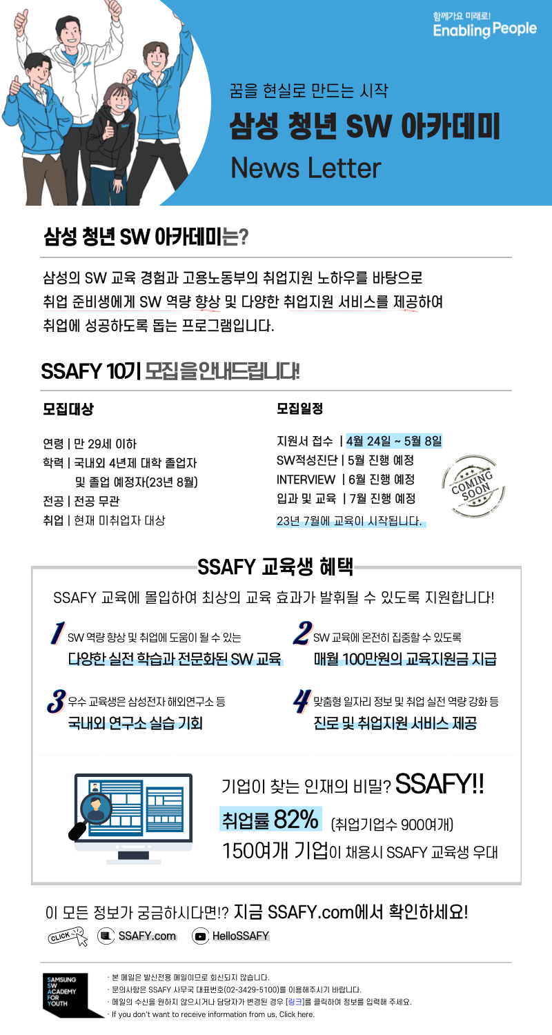 SSAFY 에서 10기 교육생을 모집합니다.