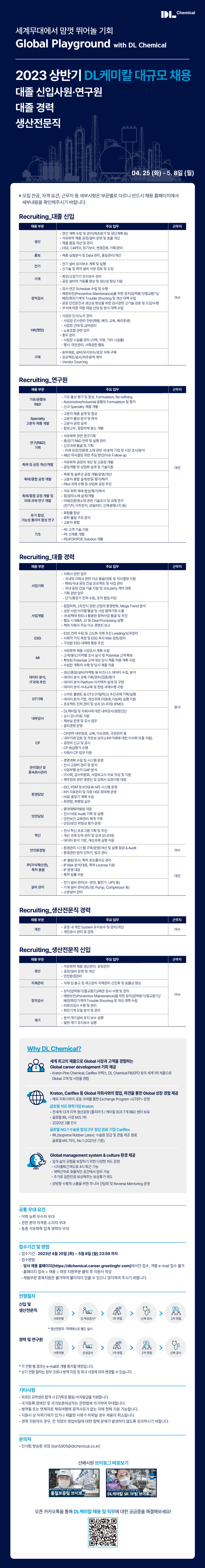 DL케미칼 채용 오픈카톡 : https://open.kakao.com/o/gk5Osbaf?rt=O009